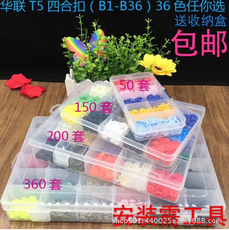 包邮360套装T5华联四合扣+安装工具宝宝爬服童装按扣送收纳盒