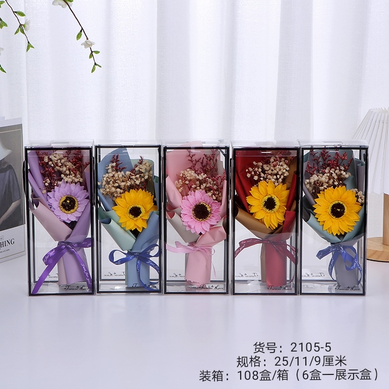 母亲节教师节礼品透明礼盒太阳花永生花仿真香皂花批发3.8女神节