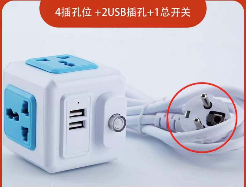 方形设计多插座2USB插头墙充电器立方体电源带插座欧规魔方设计