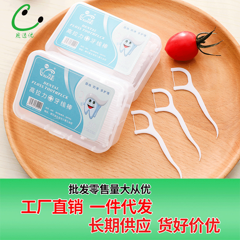 批发30支盒装牙线定制超细牙线棒 家庭装塑料牙签弓形盒装剔牙线