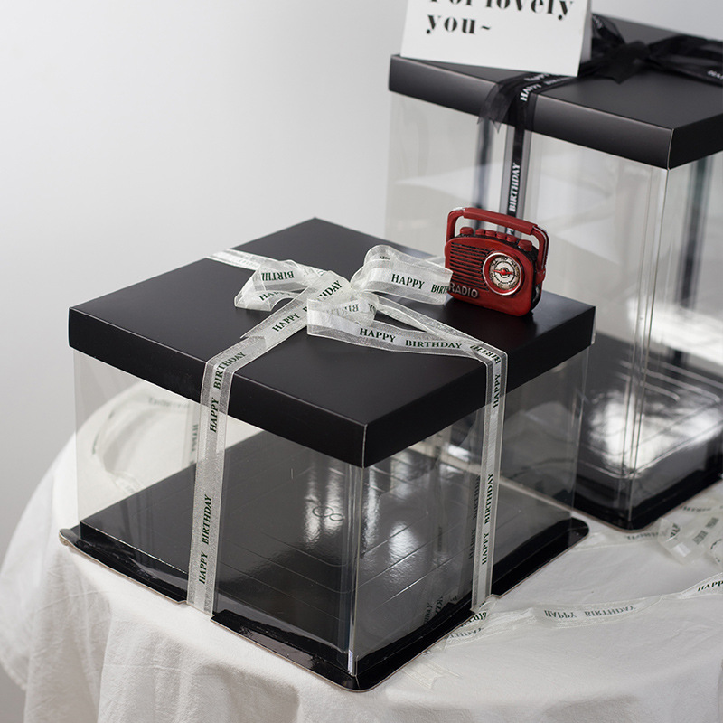 批发4/6/8/10寸单层双层加高生日蛋糕盒 塑料三合一透明蛋糕盒子