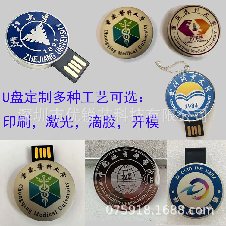 校徽U盘高档纪念品礼品企业徽章商标个性创意金属圆形u盘开模定制
