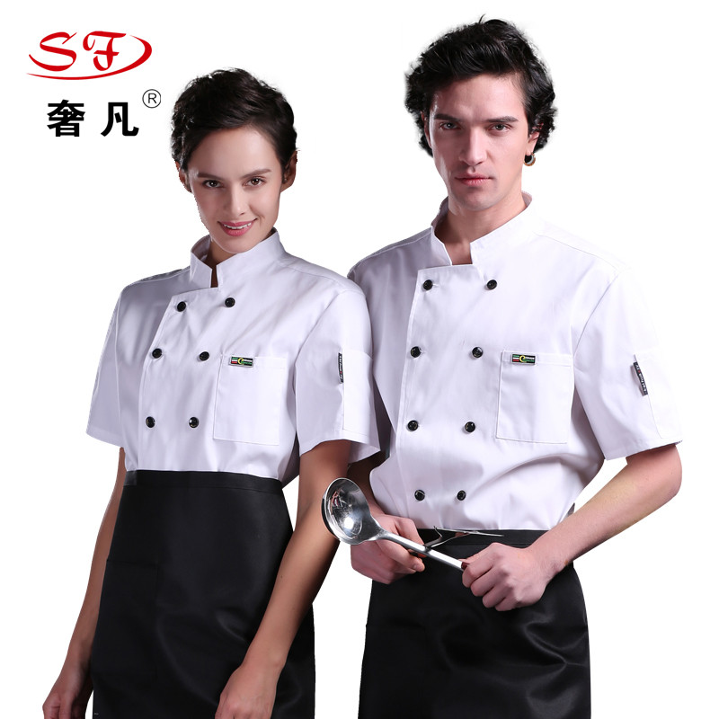 短袖刺绣双排皮标工作服中式西式订做 夏季酒店后厨厨师服纽扣