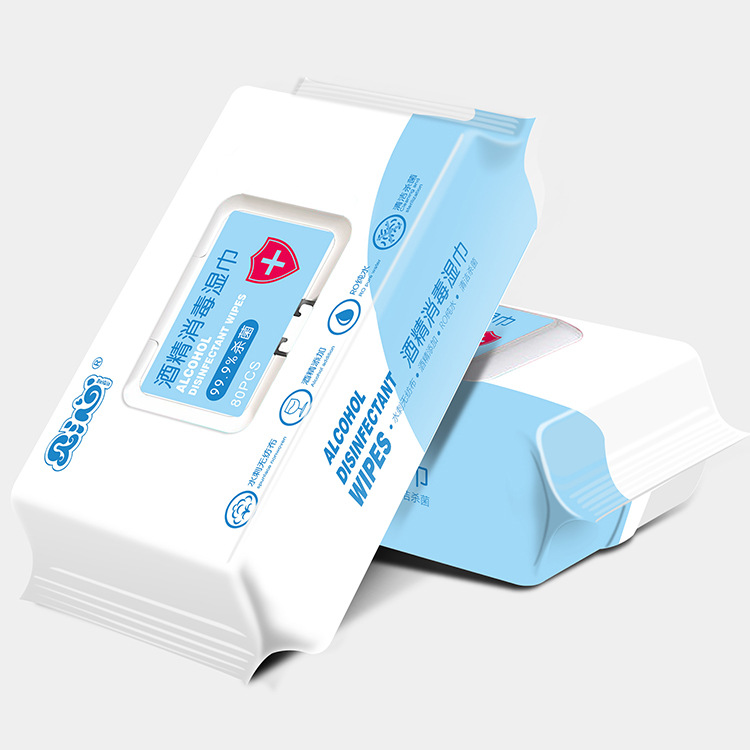 现货批发75度酒精消毒湿巾80抽大包杀菌擦手除菌家用抑菌便携纸巾