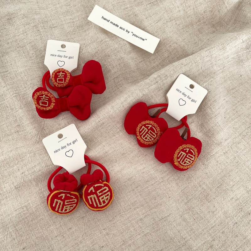 新年喜庆小福袋发绳红色系蝴蝶结发圈头绳双马尾皮筋少女发饰2022