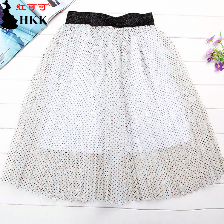 2015新款欧根纱圆点印花欧根纱半身裙短裙