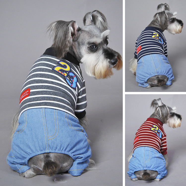 促销2015CQ秋冬新款宽条纹不倒绒牛仔套装 泰迪狗狗 宠物衣服用品