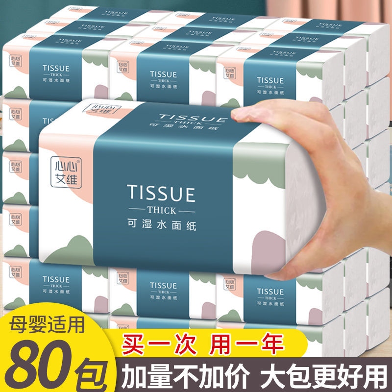 【80超值1年装】原木抽纸整箱批发家用餐巾纸巾面巾纸卫生纸