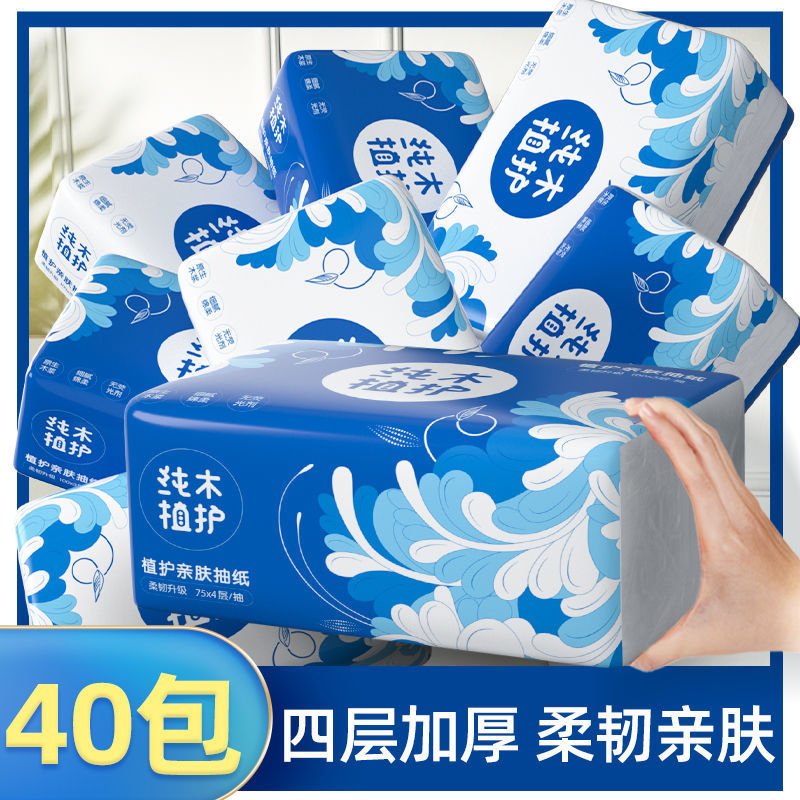 植护10包80包4层原木纸巾抽纸批发整箱餐巾纸家用面巾卫生纸