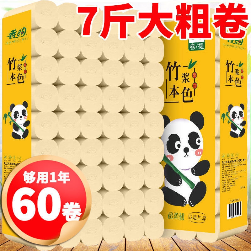 【7斤60卷大粗卷够用1年】竹浆本色卫生纸卷纸纸巾12卷批发厕纸