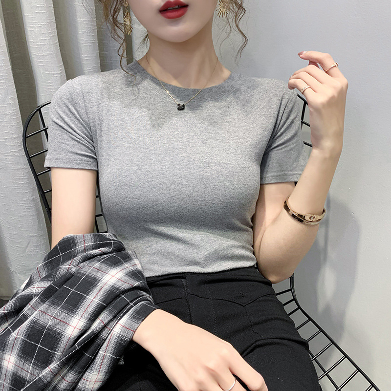 批发2021白色t恤女短袖修身夏季女装新款洋气ins潮黑色紧身上衣丅