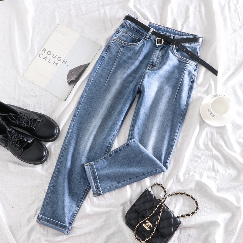 批发2021年春秋新款牛仔裤女直筒宽松高腰九分复古老爹裤子女网红