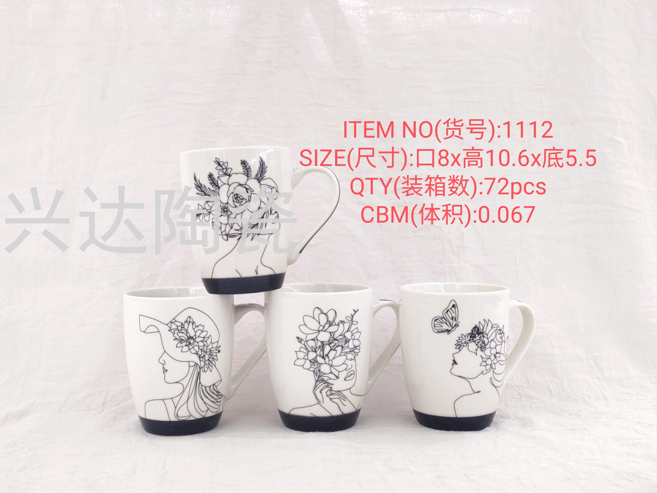 厂家直销陶瓷创意个性潮流新款时尚水杯 黑底鼓型杯女人1112