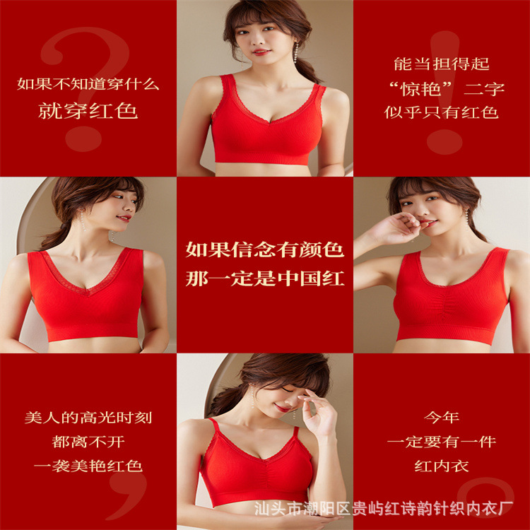 中国红内衣女无钢圈运动裹胸轻奢美背结婚新娘聚拢性感本命年文胸