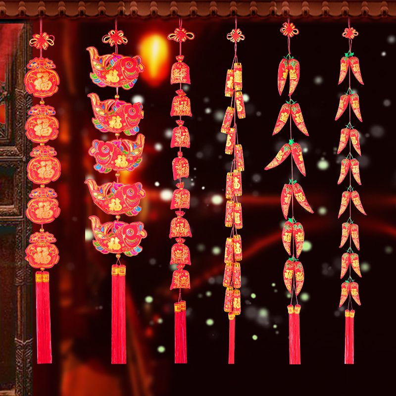 2021年 年货辣椒串鱼串中国结对联福袋串鞭炮串乔迁新房挂饰