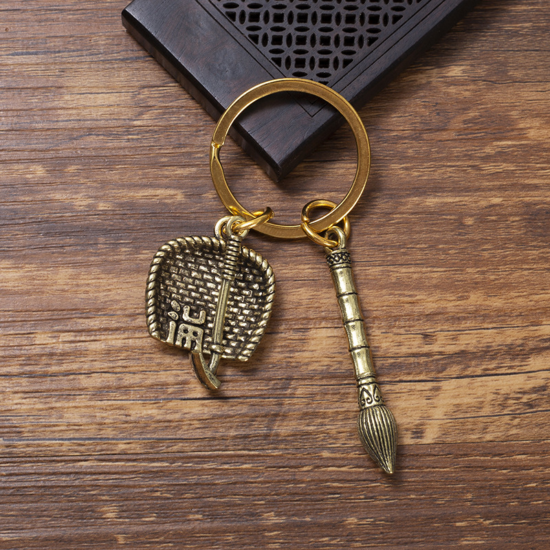 仿黄铜复古锄头簸箕三件套汽车钥匙扣挂件吉祥中国风挂饰批发