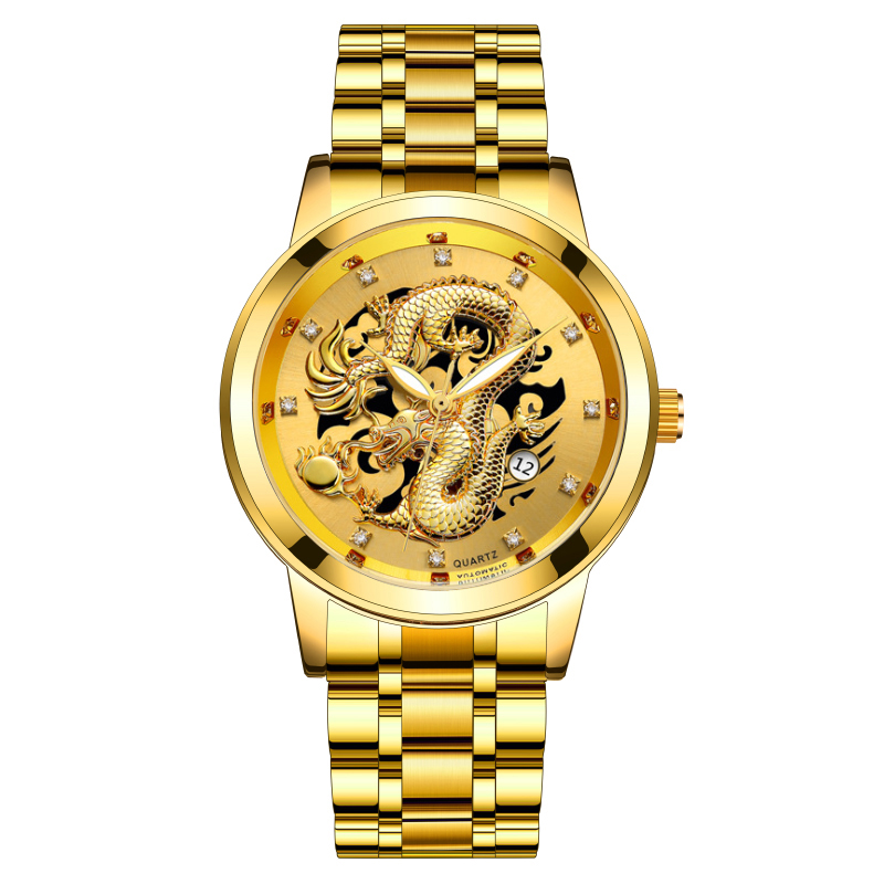 外贸爆款时尚日历男士手表男表钢带款非机械商务防水夜光中国龙表