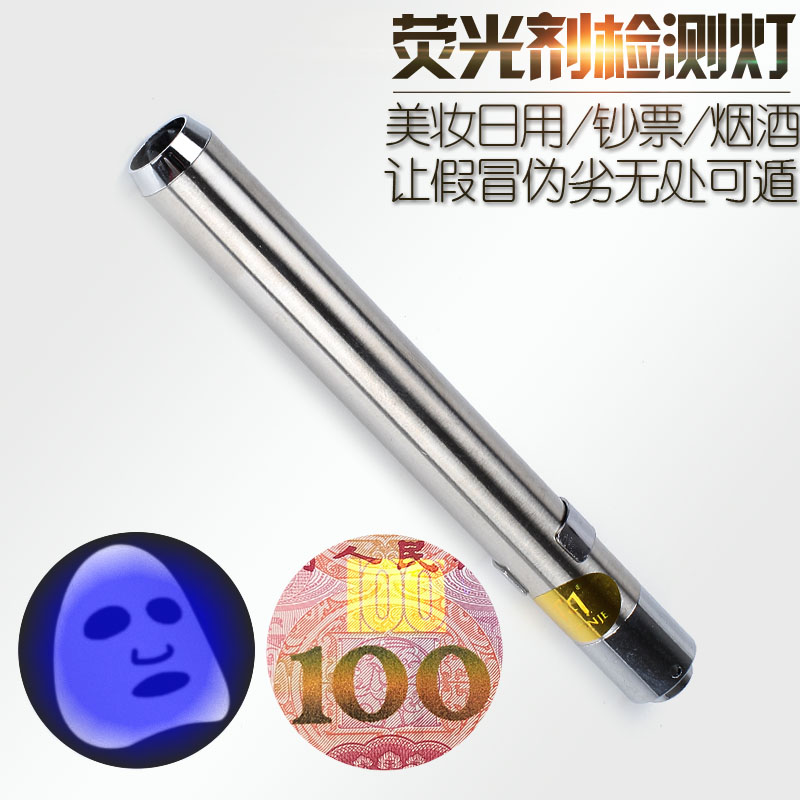 荧光剂验钞灯7号电池不锈钢365波长紫光 面膜化妆品紫外线验钞笔