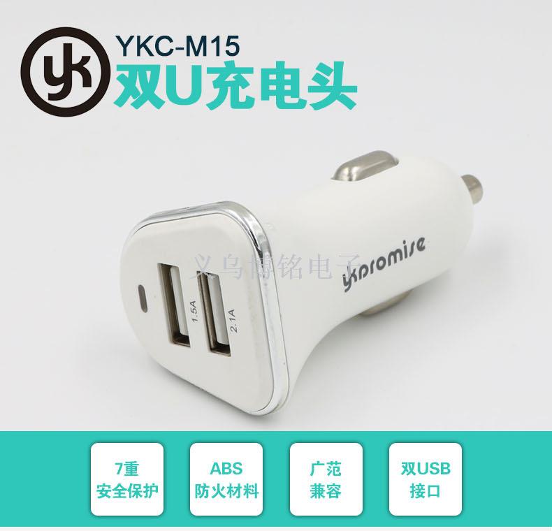 YK车载充电器车充汽车点烟器一拖二智能2A双usb转接口插