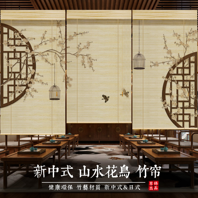 中式复古禅意卷帘竹帘子窗帘隔断印花日式家用遮光升降门帘中国风