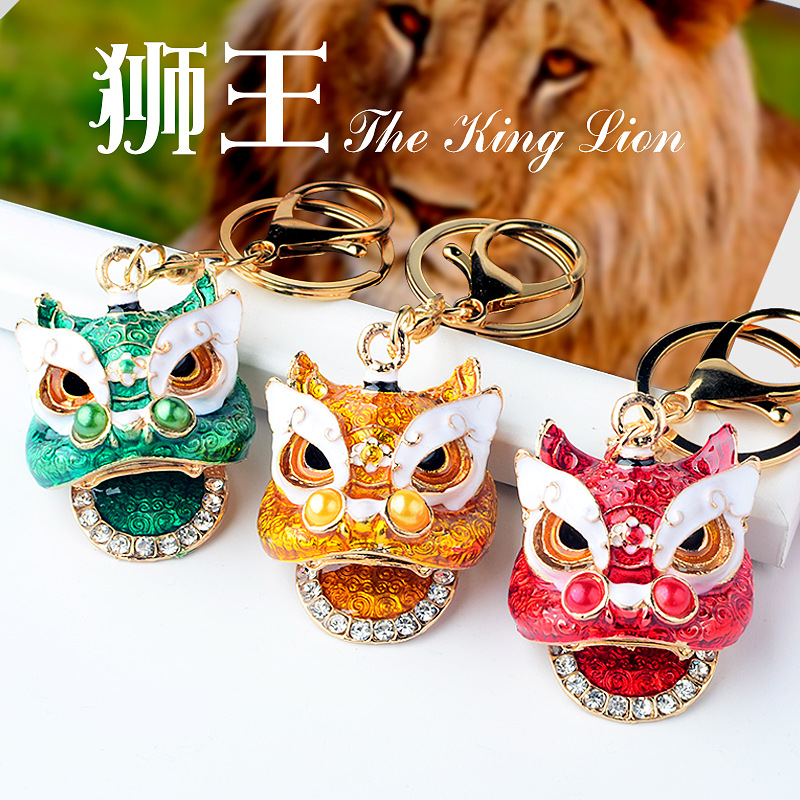 新款醒狮钥匙扣麒麟镶钻中国风小狮子包包挂件佛山舞狮创意小礼品