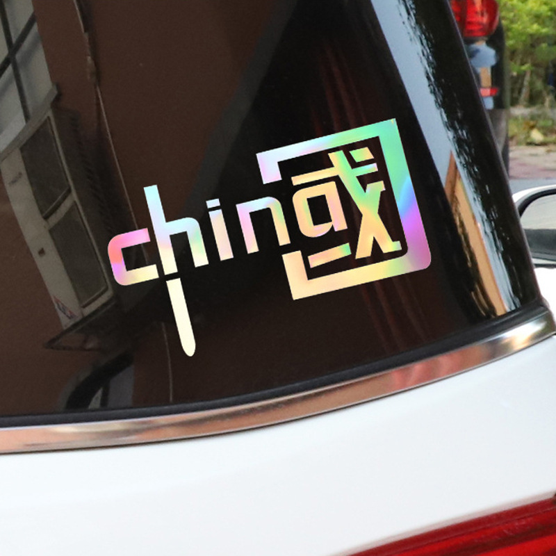 我爱中国china车贴个性创意汽车装饰贴国潮七彩反光摩托车贴