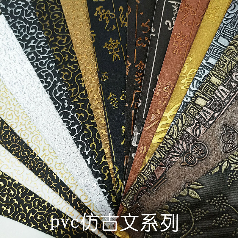 PVC仿古纹中国风人造革龙爪纹复古箱包皮革面料礼品盒包装皮革