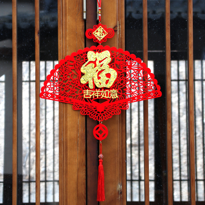 2022新年春节过年福字挂件中国结绒布毛毡布装饰 无纺布挂饰