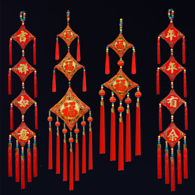 新年绒布中国结民族风对联挂串金粉中国风福字串挂件挂饰装饰批发