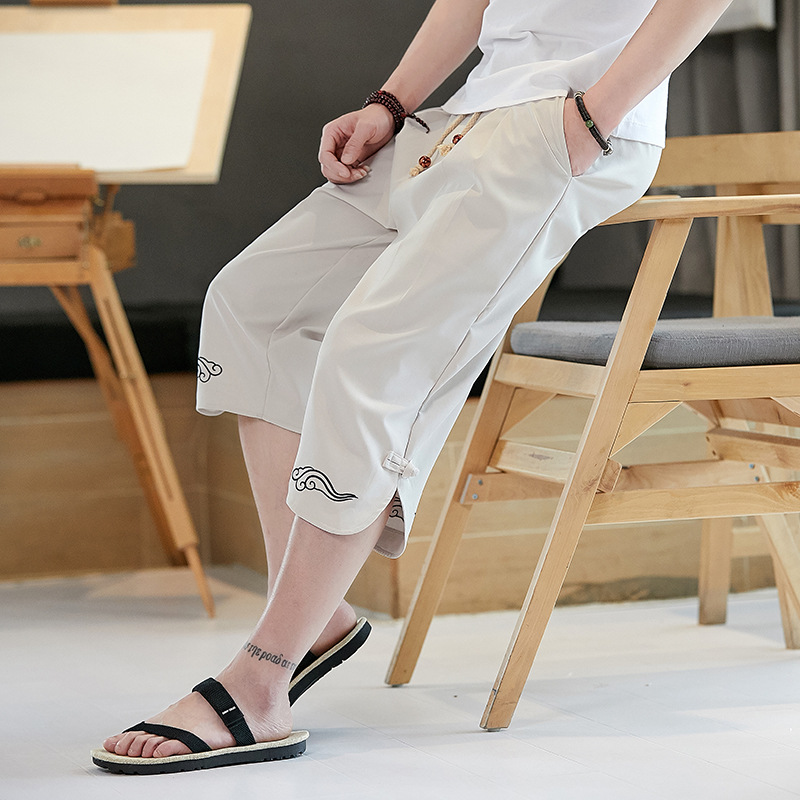 夏季宽松薄款中国风亚麻短裤男大码阔腿休闲裤哈伦棉麻七分裤男装