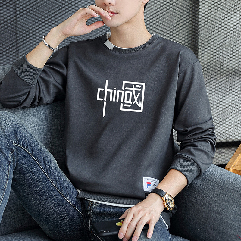 2021秋季新款男士卫衣休闲百搭青年帅气长袖T恤圆领男装中国上衣