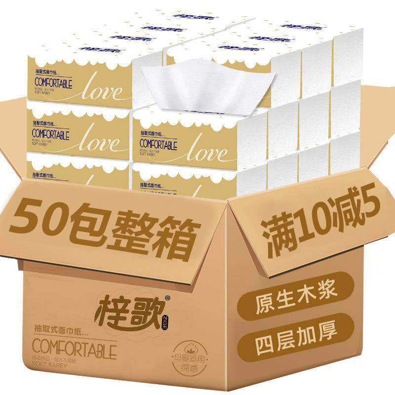 50包原木家用餐巾纸四层抽纸卫生纸巾母婴适用可湿水厂家直发