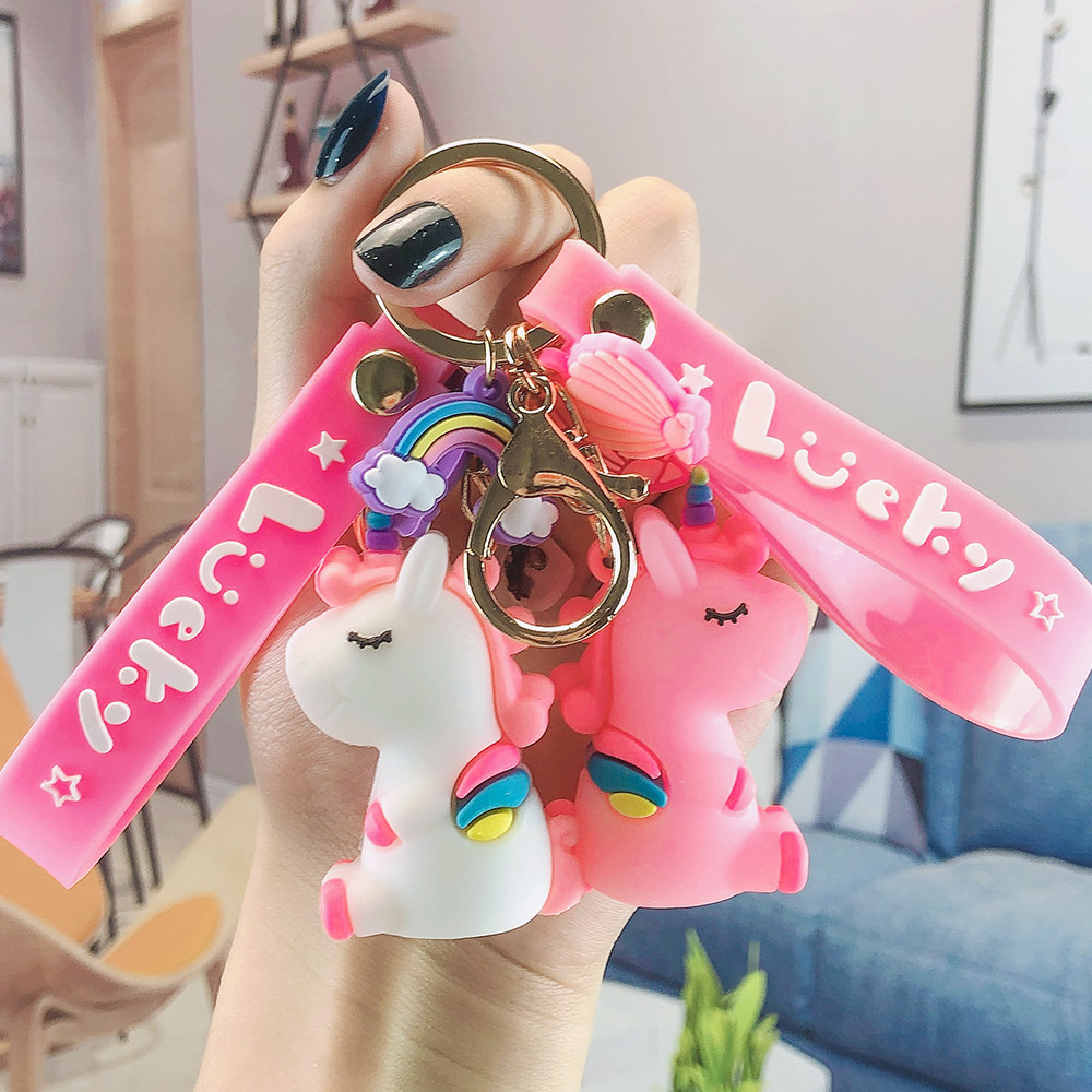 新款硅胶卡通独角兽钥匙扣情侣包包钥匙链汽车挂件创意礼品批发