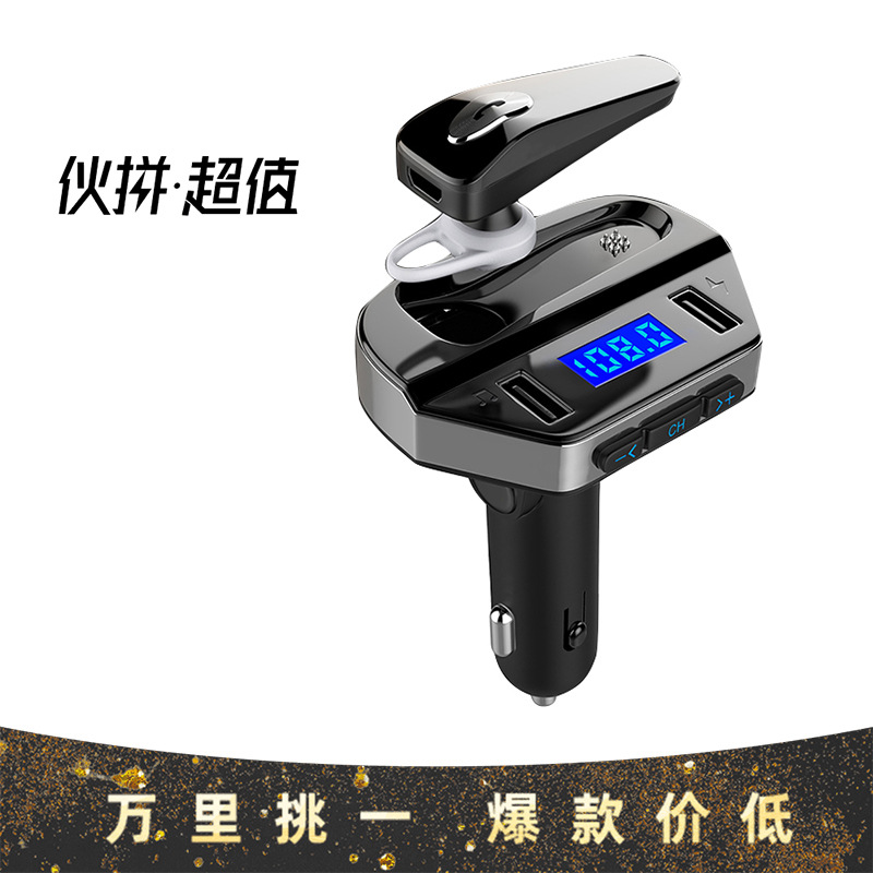 车载MP3播放器车载蓝牙免提蓝屏v6双USB智能快充汽车车载fm发射器