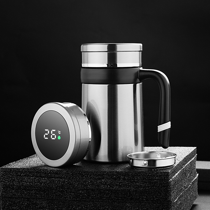 新款智能显温不锈钢保温杯带手柄办公水杯茶水分离泡茶杯礼品定制
