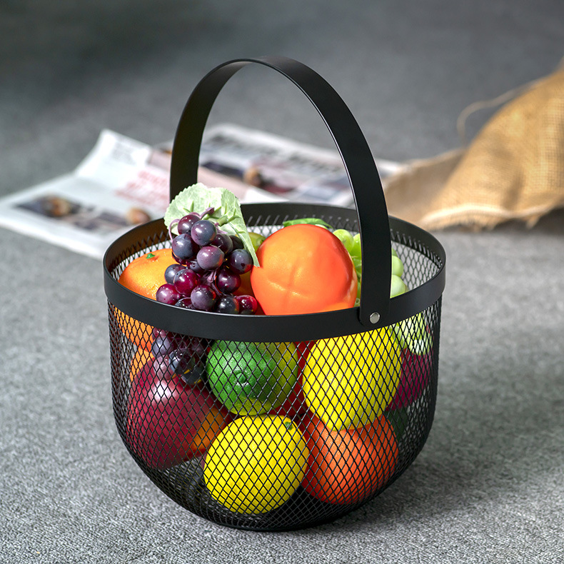 圆形铁艺水果蔬菜手提篮子杂物收纳筐厨房杂物置物篮北欧收纳篮