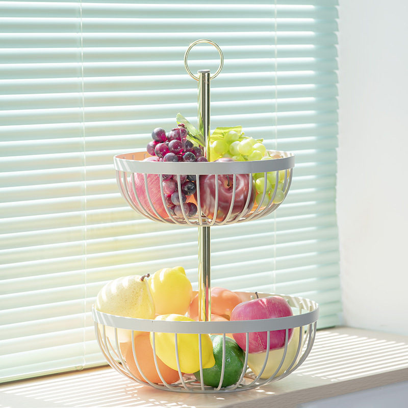 创意双层水果篮北欧INS镂空桌面铁艺零食糖果篮子厨房金属收纳篮