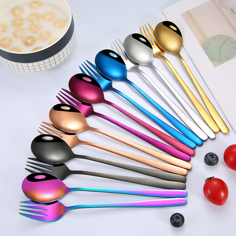 镀钛韩式不锈钢勺叉彩色沙拉水果叉蛋糕甜品勺不锈钢餐具