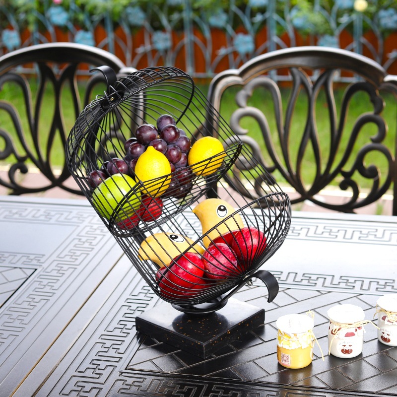 欧式奢华水果篮铁艺现代创意零食篮客厅茶几摆件家用多层水果盘