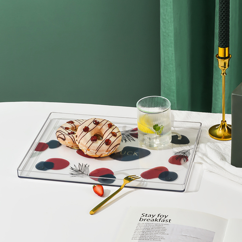 轻奢北欧客厅方形托盘长方形简约创意水果餐盘托盘家用放茶杯盘