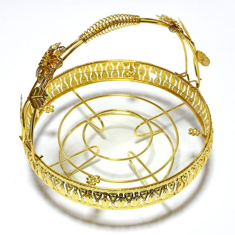 圆形铁艺水果篮便携式盛装水果食物金属提篮铁架玻璃果篮