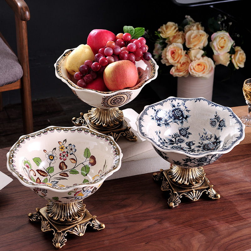 新中式青花创意陶瓷水果盘欧式美式茶几干果盘家居工艺品摆件