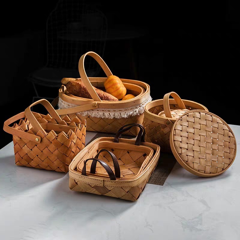 编织木片手提篮子编织收纳筐水果篮面包篮婚礼花篮