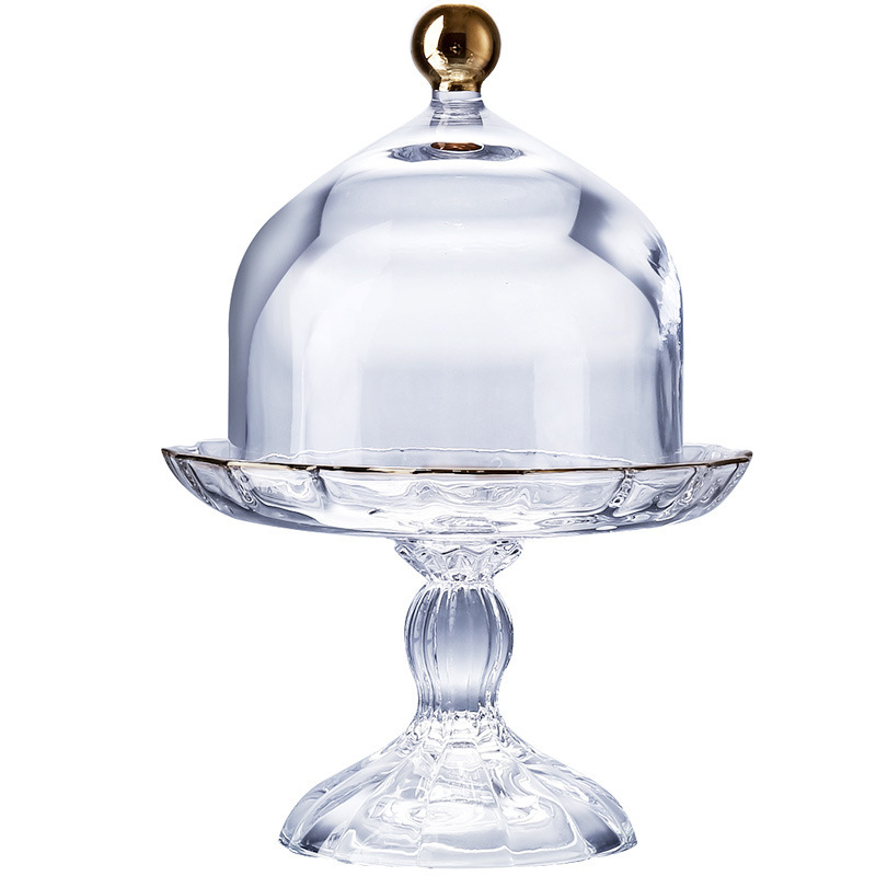 欧式镀金现代轻奢玻璃有盖下午茶装饰水果点心蛋糕糖果盘