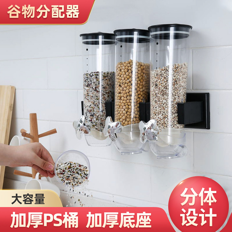 壁挂式三筒麦片机杂粮储物罐厨房干果罐零食罐收纳罐食品密封罐