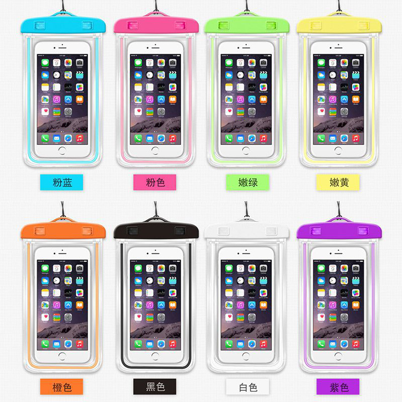高档新款夜光荧光触屏智能透明户外潜水游泳手机防水袋防水手机套