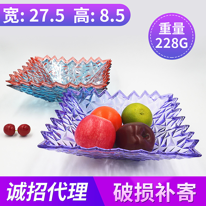 创意现代家用客厅PS果盘懒人水果盘定制大号透明带盖零食糖果盘
