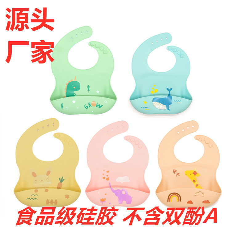 夏季食品级硅胶围兜 卡通3D图案小孩口水兜巾 新款吃饭兜孩子用品