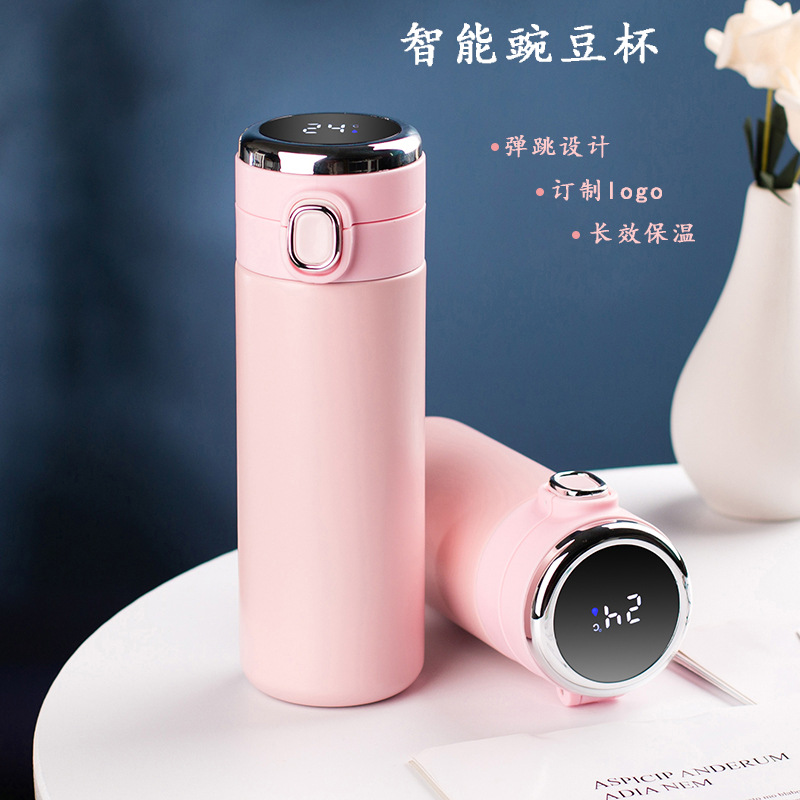 不锈钢智能显温豌豆杯保温杯创意小清新学生水杯商务礼品泡茶杯子