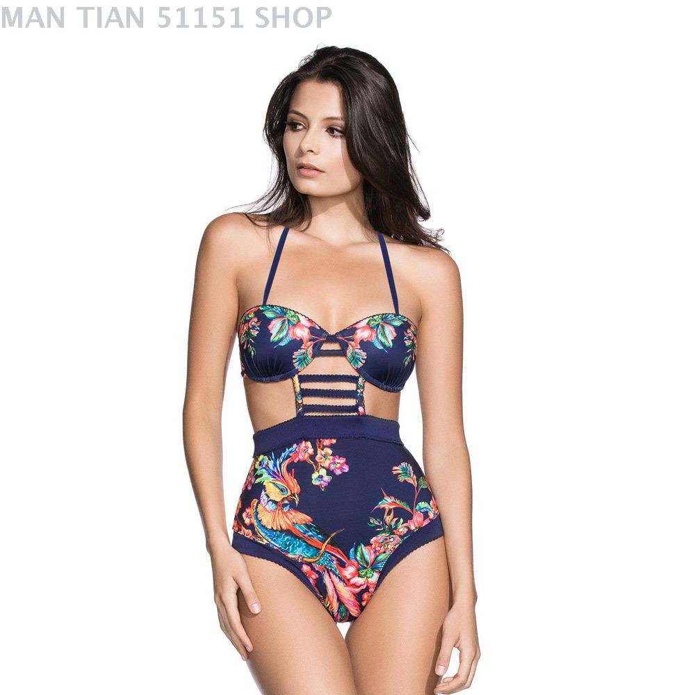 2019新款欧美性感连体游泳衣女士印花露背比基尼bikini泳装
